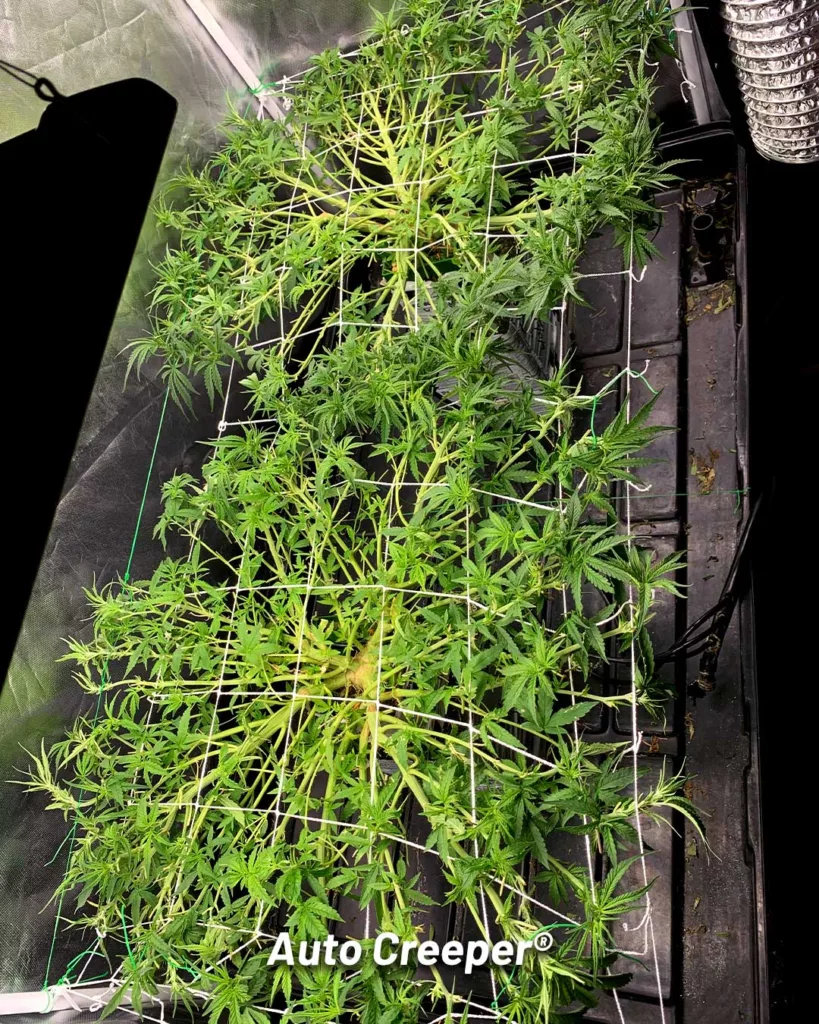 After nine days of growth (photos taken yesterday), the Auto Creepers—now at day 36—are nearly ready for the SCROG net.