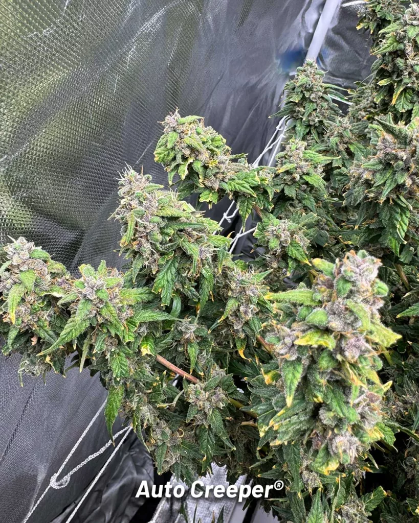 With the Auto Creepers growing under the SCROG screen the vigorous plant development continued. Each of the numerous bloom points gradually developed, eventually producing a sensational heavy bloom. Comments are from 420autoflower: